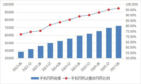 中國手機網(wǎng)民規(guī)模及其占網(wǎng)民比例