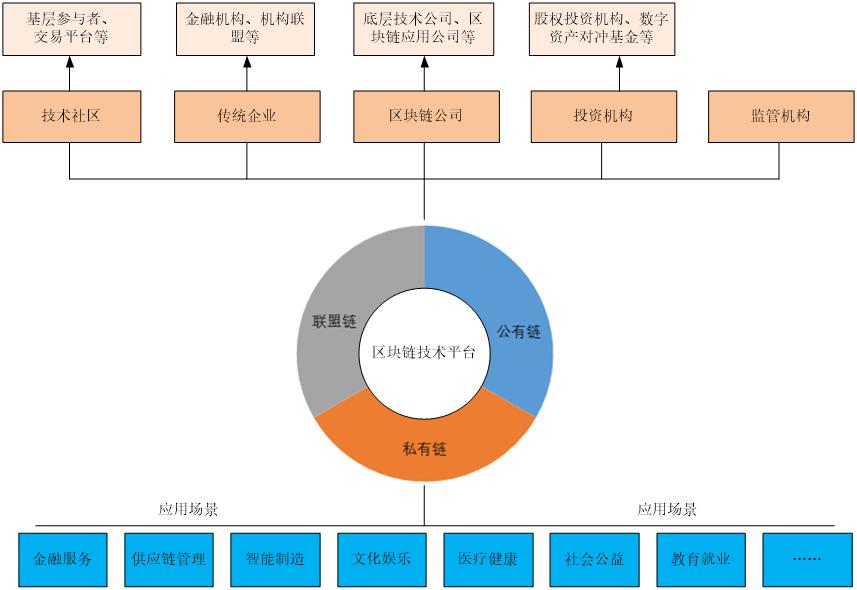 在區(qū)塊鏈技術(shù)開發(fā)、區(qū)塊開采、數(shù)字資產(chǎn)投資方面操作的參與者,大致可分為