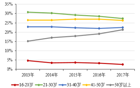 農(nóng)民工是我國城鎮(zhèn)化進(jìn)程中的勞動力主力軍,然而近年來,農(nóng)民工群體也呈現(xiàn)出逐步老齡化的特征,農(nóng)民工平均年齡不斷提高,50歲以上農(nóng)民工所占比重提高較快。2017年農(nóng)民工平均年齡為39.7歲,比16年提高0.7歲。從年齡結(jié)構(gòu)看,30歲以下的年青一代農(nóng)民工所占比重為29.9%,比16年下降2.0個百分點(diǎn);40歲及以下農(nóng)民工所占比重為52.4%,比16年下降1.5個百分點(diǎn);50歲以上農(nóng)民工所占比重為21.3%,比16年提高2.2個百分點(diǎn),自2014年以來比重提高呈加快態(tài)勢。農(nóng)民工老齡化逐年加劇,直接影響了社會勞動力的供給,機(jī)器替代人工成為解決這一問題最為有效的方式,也是我國制造業(yè)轉(zhuǎn)型升級的必經(jīng)之路。