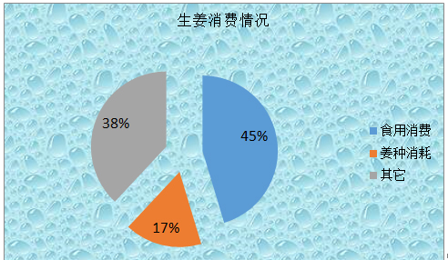 圖2為我國生姜市場消費情況??偟目磥?,生姜消費需求相對穩(wěn)定,2016年1654萬噸,同比增長8.4%,各類消費合計838萬噸。其中,食用消費380萬噸,姜種消耗139萬噸。