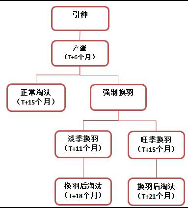 1)祖代1日齡引種,到24周進入產(chǎn)蛋周期,再經(jīng)過3周孵化,產(chǎn)出第一套父母代;