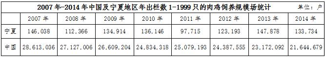 從以上數(shù)據(jù)分析可知,寧夏的肉雞飼養(yǎng)規(guī)模上得不到很好的提升,大多數(shù)都僅僅是靠家庭小規(guī)模飼養(yǎng)為主,大規(guī)模的飼養(yǎng)場在寧夏地區(qū)非常匱乏。不僅對寧夏肉雞行業(yè)的市場影響非?;靵y,也不能達到更高更優(yōu)質(zhì)的產(chǎn)量,提升寧夏肉雞行業(yè)市場競爭力顯的尤為困難。