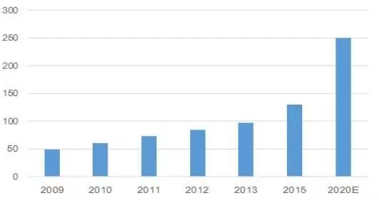 全球網(wǎng)絡(luò)安全市場(chǎng)規(guī)模預(yù)測(cè)(億美元)