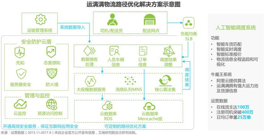 2016年底,運(yùn)滿滿攜手阿里云,發(fā)布了“牛魔王”人工智能調(diào)度系統(tǒng),結(jié)合運(yùn)滿滿的數(shù)據(jù)和用戶場景、以及阿里云的算法團(tuán)隊,共同推動干線配貨人工調(diào)度朝著智能化方向推進(jìn)?!芭D酢毕到y(tǒng)是基于云計算、大數(shù)據(jù)、移動互聯(lián)網(wǎng)和人工智能技術(shù)的公路物流領(lǐng)域高新技術(shù)綜合應(yīng)用的典型代表,可以實現(xiàn)服務(wù)車主與貨主的智能車貨匹配、智能實時調(diào)度、智能標(biāo)準(zhǔn)報價及對物流信息全程追蹤和可視化,顯著提升公路干線物流貨源、車輛、路線、價格匹配速度、精準(zhǔn)度和運(yùn)輸組織效率。