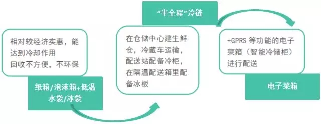 目前國內(nèi)有三種冷鏈配送方式,占比最大的是第一種。相比國外的冷鏈配送,中國冷鏈配送還不夠完善,也非真正的全程冷鏈,容易造成生鮮的損耗高的問題,用戶體驗差,冷鏈配送未來擁有較大完善空間。