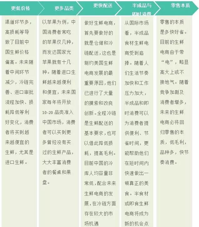 ? 一方面,一大批中小型生鮮電商企業(yè)或倒閉或被并購;另一方面,巨頭入局,不斷加碼冷鏈物流和生鮮供應(yīng)鏈投資,擁有全產(chǎn)業(yè)鏈資源和全渠道資源的企業(yè)將愈發(fā)具有優(yōu)勢。