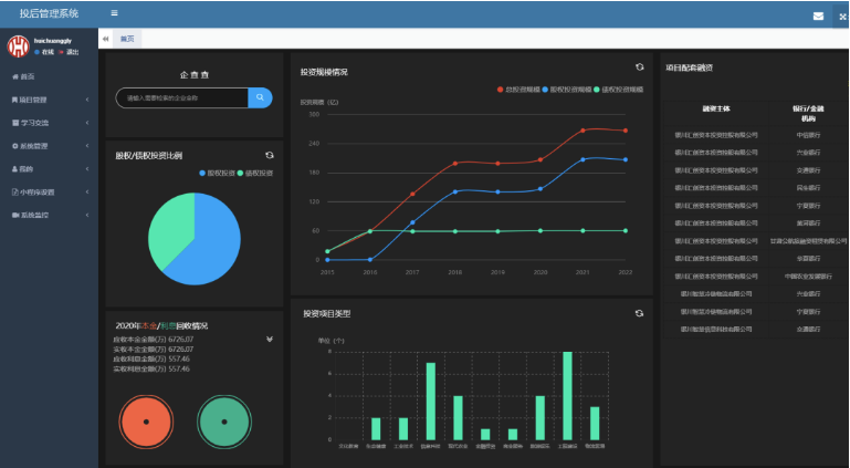 為進(jìn)一步全面推進(jìn)集團(tuán)公司國企改革三年行動工作落實(shí)落地,積極探索公司數(shù)字化轉(zhuǎn)型新路徑,推動數(shù)字經(jīng)濟(jì)與風(fēng)險防控深度融合,著力提升公司合規(guī)風(fēng)控及投后管理的標(biāo)準(zhǔn)化、規(guī)范化、信息化水平,銀川智慧信息科技有限公司根據(jù)集團(tuán)公司關(guān)于國企改革、數(shù)字化轉(zhuǎn)型和高質(zhì)量發(fā)展的整體工作部署,打造了投后管理系統(tǒng)平臺,目前,已正式投入使用。平臺旨在通過投后管理系統(tǒng)平臺進(jìn)行良好的投后管理,為化解風(fēng)險提供精準(zhǔn)有效的數(shù)據(jù)支撐,減少或消除潛在投資風(fēng)險,保障國有投資安全,實(shí)現(xiàn)國有資產(chǎn)的保值增值。